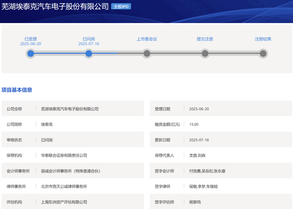 提交IPO申请近一个月后,芜湖埃泰克汽车电子股份无限公司(以下简称“埃泰克”)的IPO审核形态近日变动为“已问询”。按照打算,埃泰克此次拟募集15亿元投向“埃泰克年产500万件汽车电子项目”等四个扶植项目以及弥补流动资金。《经济参考报》记者留意到,埃泰克正在招股书中大篇幅描述了公司正在车身域、智能座舱域、动力域以及智能驾驶域等汽车电子产物方面的市场份额、市场及研发劣势。然而,埃泰克营收对奇瑞汽车的依赖度越来越高,同时公司对奇瑞汽车的应收账款占比也逐年攀升,公司研发费用率大幅低于同业可比公司均值,正在埃泰克冲刺IPO前,小米、复星等股东却低价抛售股份。